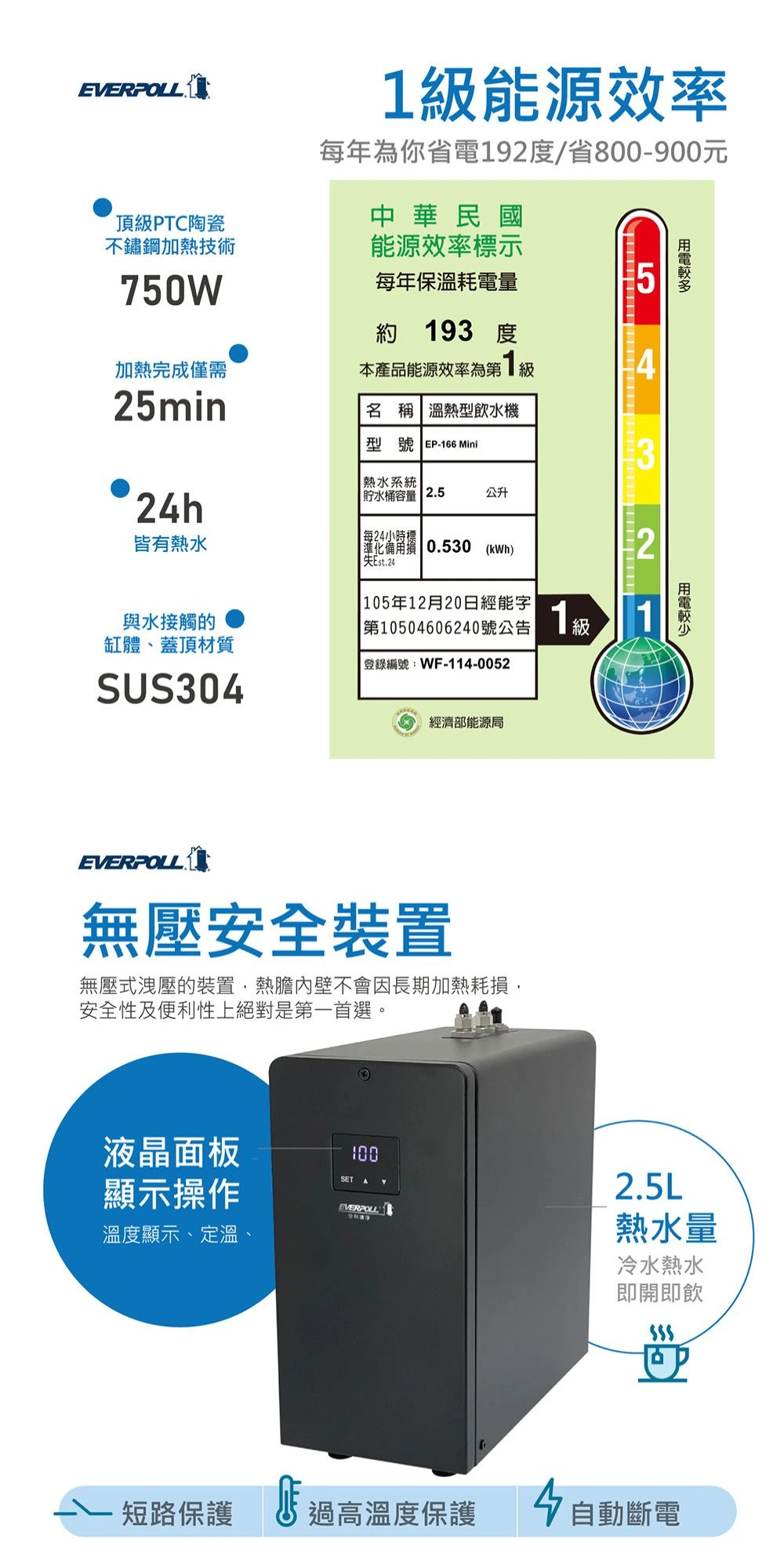 廚下型雙溫無壓飲水機(EP-166 mini)